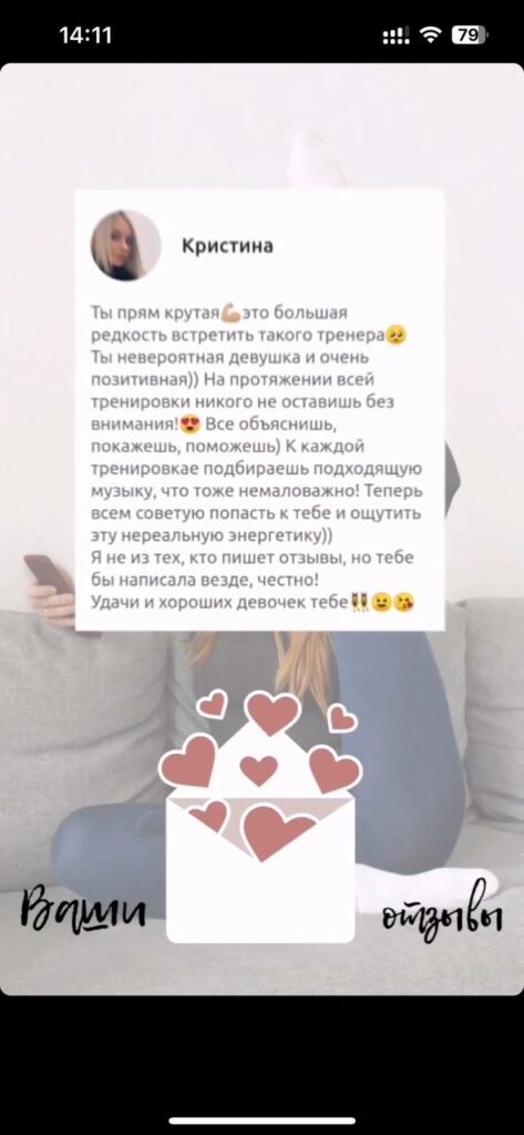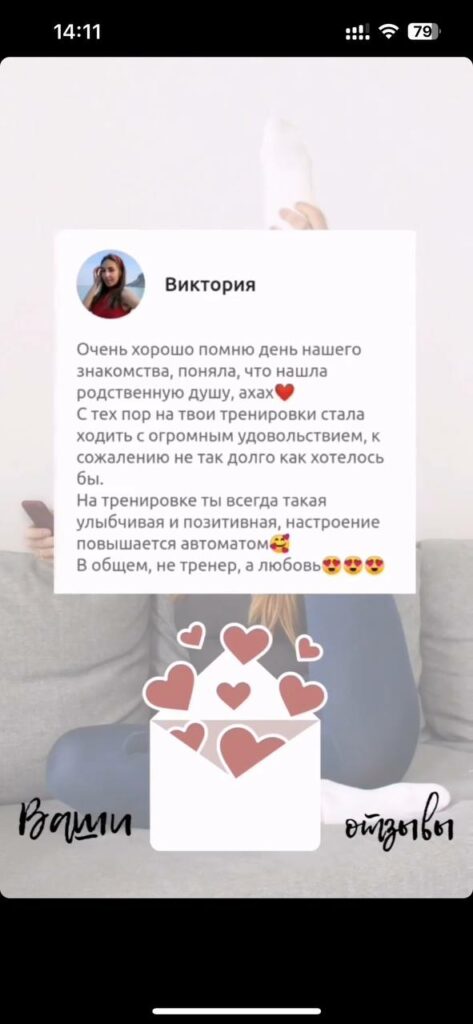 Переквалифицировалась в тренера, за 5 лет прошла много курсов, семинаров и до сих пор продолжаю учиться. Работа с телом стала моей профессией. Я работаю персонально, специализируюсь на восстановительном, коррекционном фитнесе, тренирую при грыжах и протрузиях, помогаю клиентам двигаться без боли, снижать вес, избавляться от отеков не мучая их изнурительными физическими нагрузками, а благодаря обучению правильным паттернам движения и восстановления корректной работы внутренних систем.